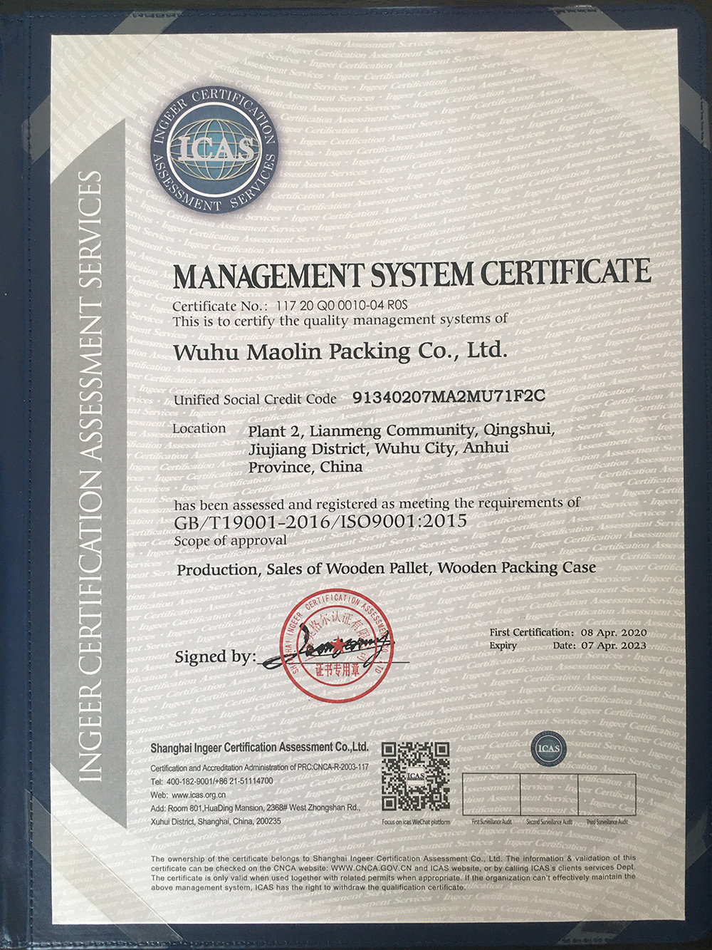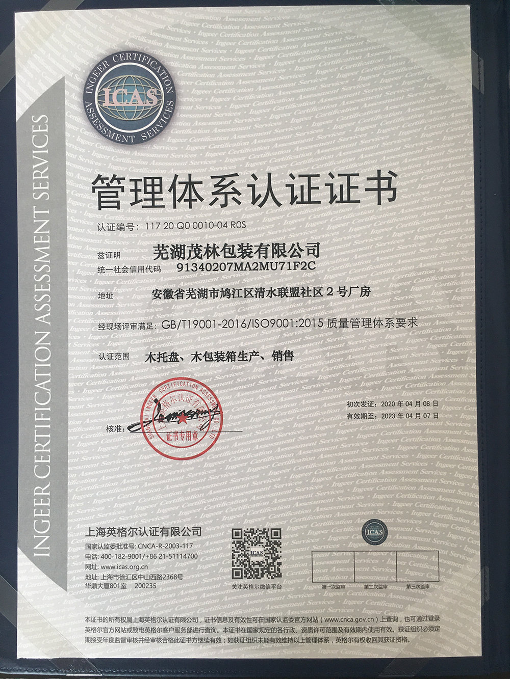 随着我国加入WTO的不断深入,我公司为提高产品竞争力,在质量上加大了投入,并制定了系列检测标准,严格执行质量检测程序,值得欣喜的是通过我们的扎实工作,公司已顺利通过了 ISO9001质量体系认证,并取得了《出口包装产品生产许可证》。